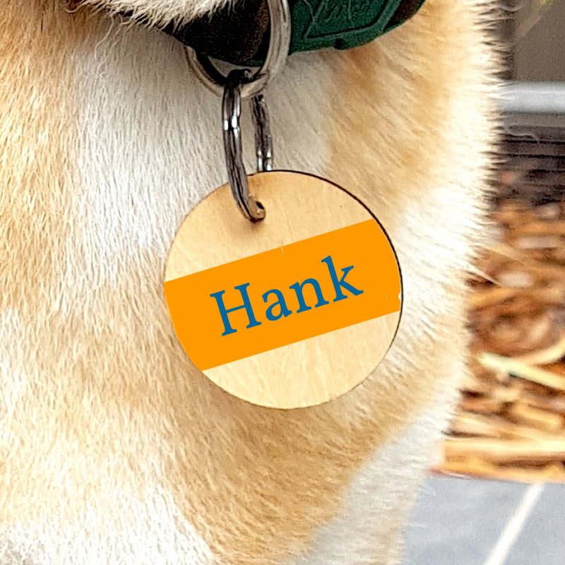 If you’re after a simple 39mm x 39mm pet tag with your pet’s name and your contact details on it, look no further!
